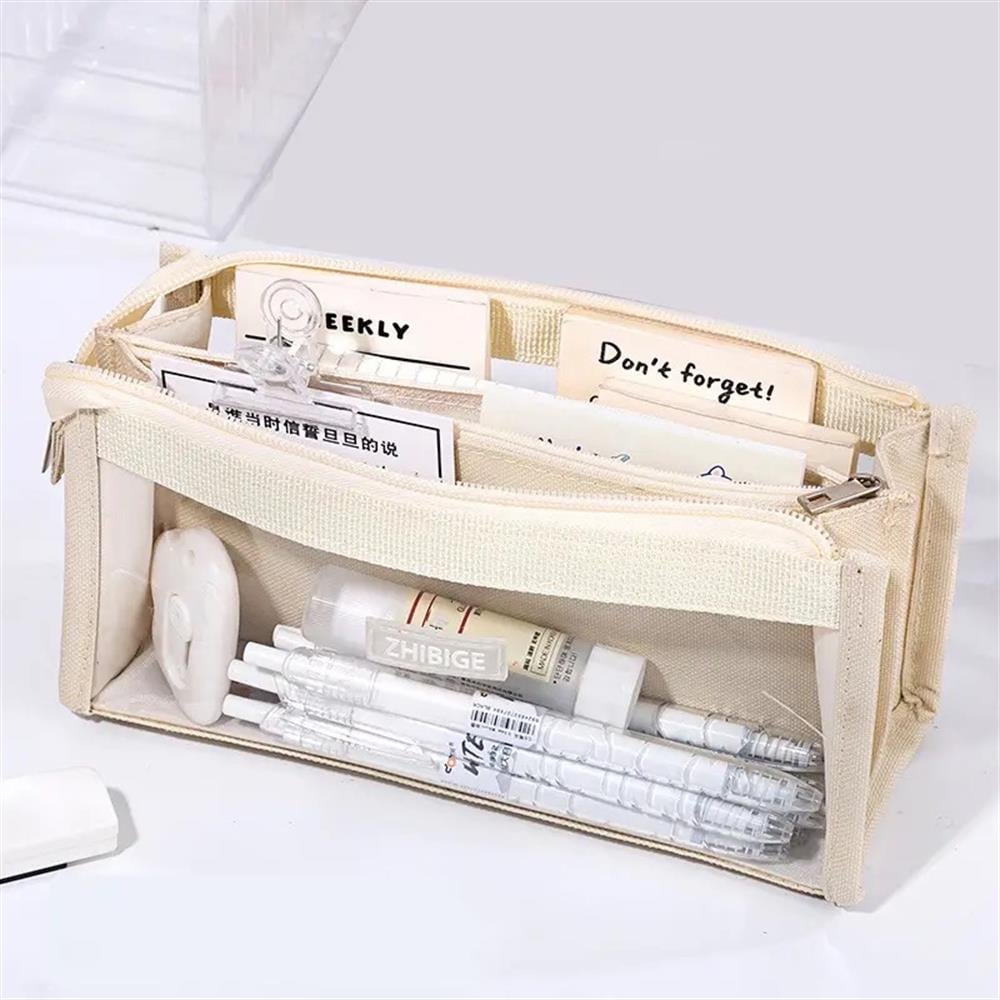 Çok katmanlı kalem çantamız Zhibige markadır. 80 kalem ve 20 cm cetvel konabilir. İçerisinde fermuarlı bir bölmenin yanında iki adet ayrı cep bulunmaktadır. Su ve toz geçirmez. Kolay temizlenebilir. PVC olan dış şeffaf yüzeye kanvas kumaş eşlik etmektedir. Kalem çantasının ölçüsü görselde verilmiştir. Kalem çantası krem rengidir, diğer görseller özellikleri belirtmek adına kullanılmıştır. Görselde yer alan malzemeler ürüne dahil değildir.