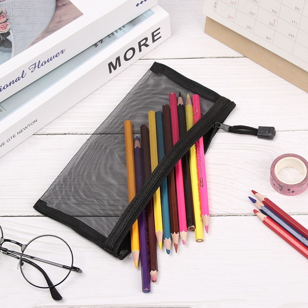 Boyutları 20.5 cm x 10 cm olan şeffaf siyah file kalem çantası. Sadece kalem için değil makyaj malzemeleri, çantadaki ıvır zıvır ve seyahatlerde takı çantası olarak kullanabileceğiniz hafif ve cool bir üründür.